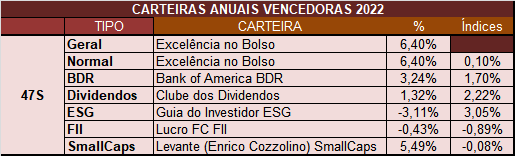 Carteira Anual Vencedora da Semana - 47S/2022 (21 a 25/NOV/22)